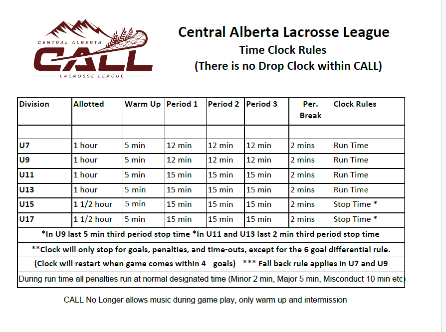 All clubs are to declare teams U9-U17 to centralalbertalacrosse@gmail.com